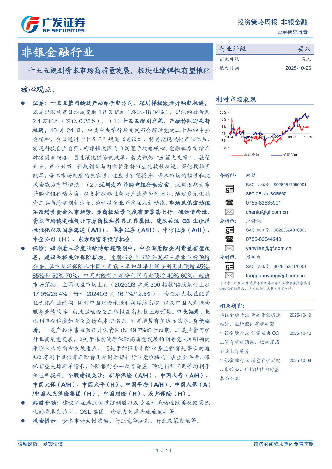 非银金融行业:十五五规划资本市场高质量发展,板块业绩弹性有望催化