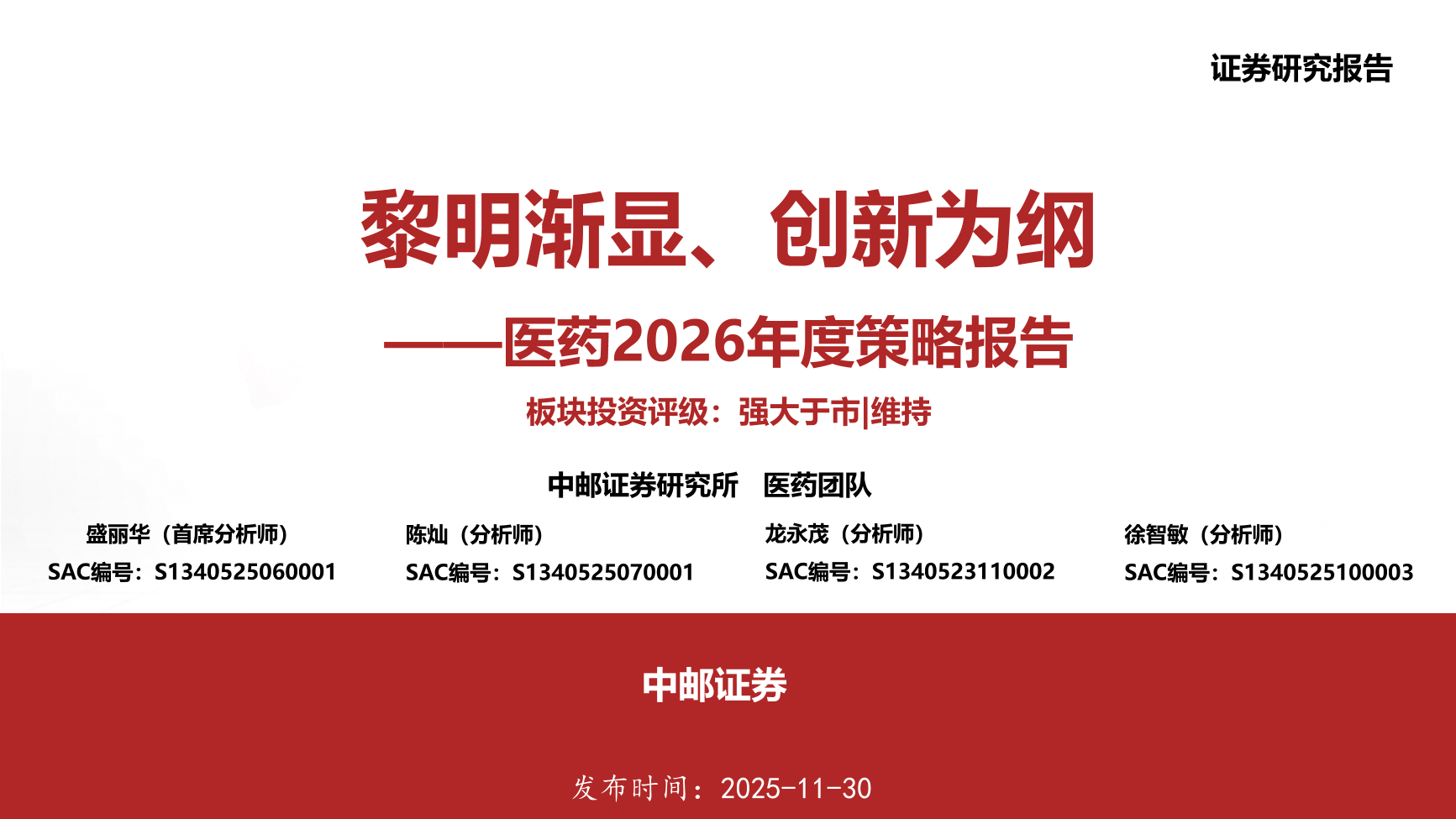 医药行业2026年度策略报告:黎明渐显、创新为纲