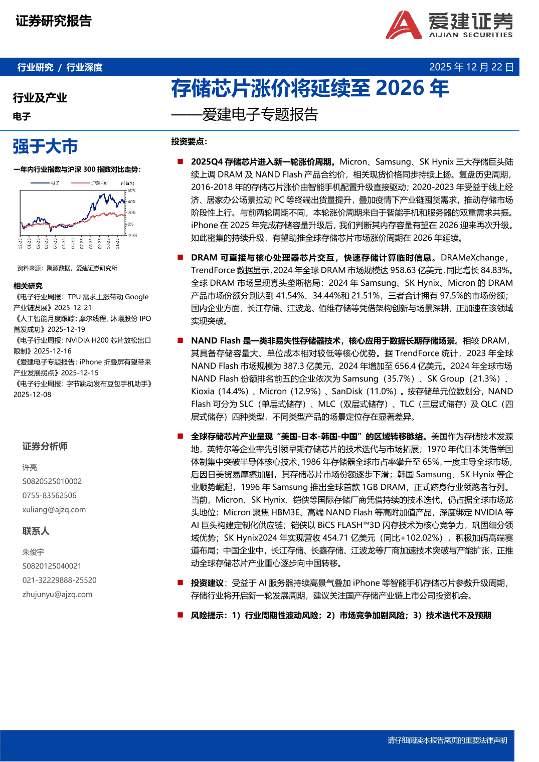 电子行业专题报告:存储芯片涨价将延续至2026年