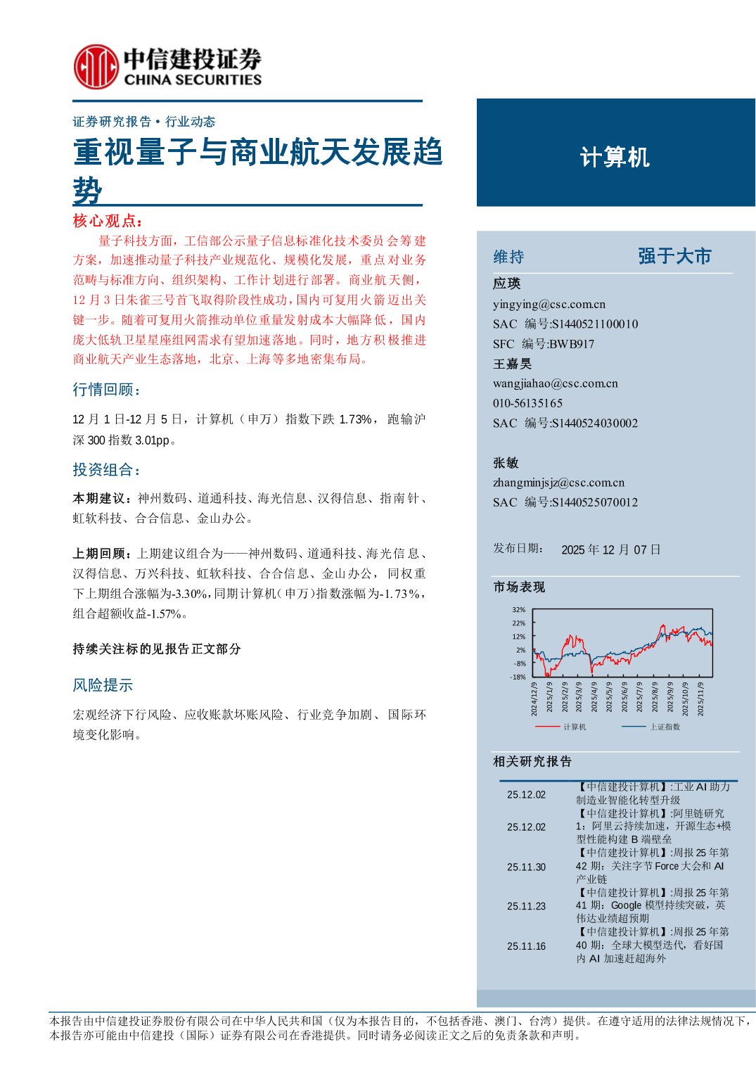 计算机行业:重视量子与商业航天发展趋势