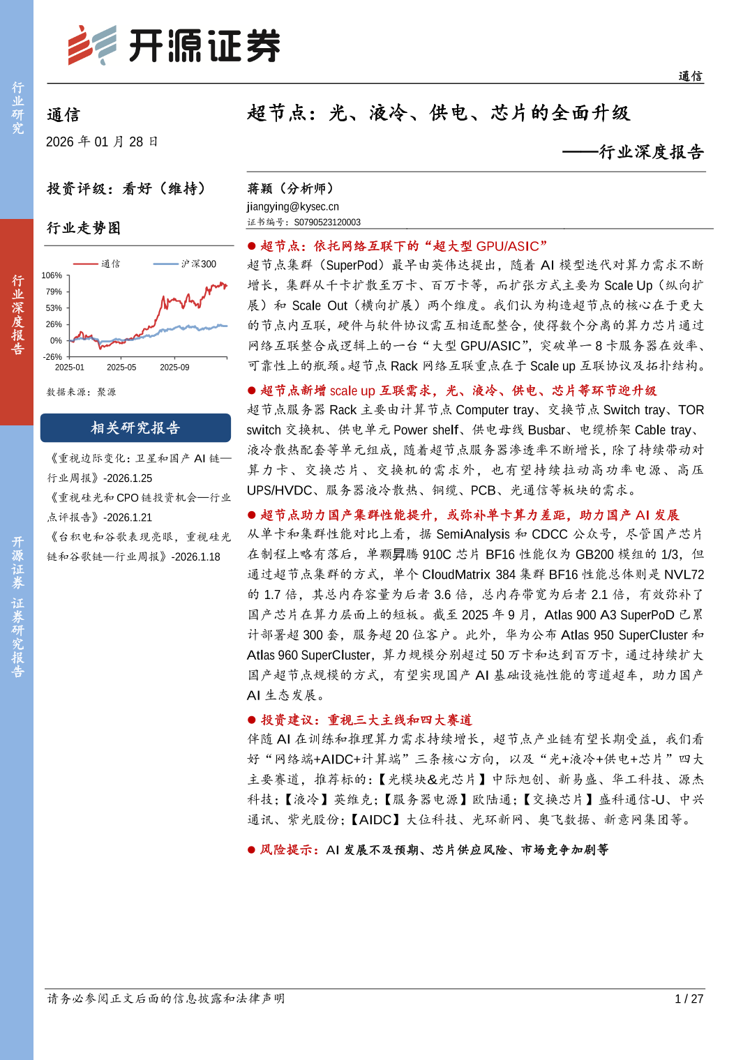 通信行业深度报告:超节点,光、液冷、供电、芯片的全面升级
