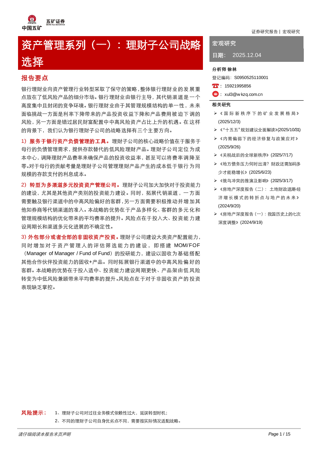 资产管理系列(一):理财子公司战略选择