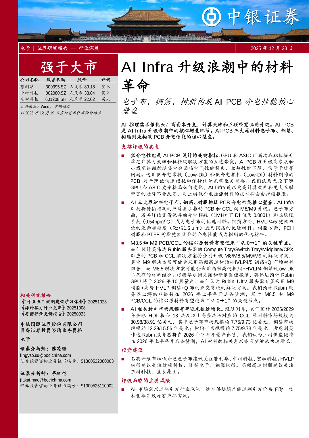 AI_Infra升级浪潮中的材料革命:电子布、铜箔、树脂构筑AI_PCB介电性能核心壁垒