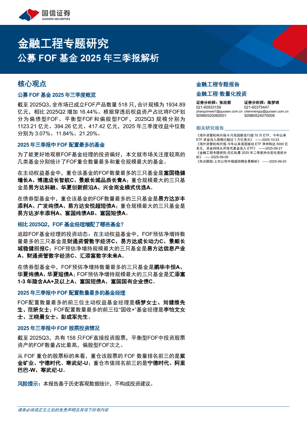 金融工程专题研究:公募FOF基金2025年三季报解析