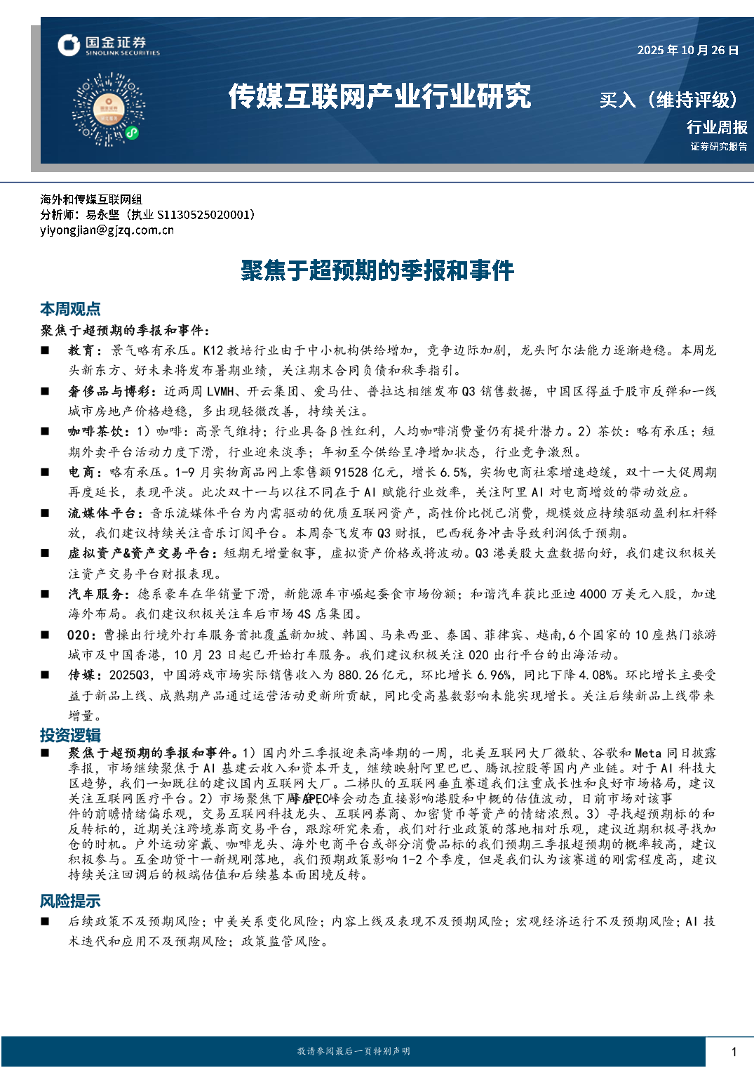 传媒互联网产业行业研究:聚焦于超预期的季报和事件