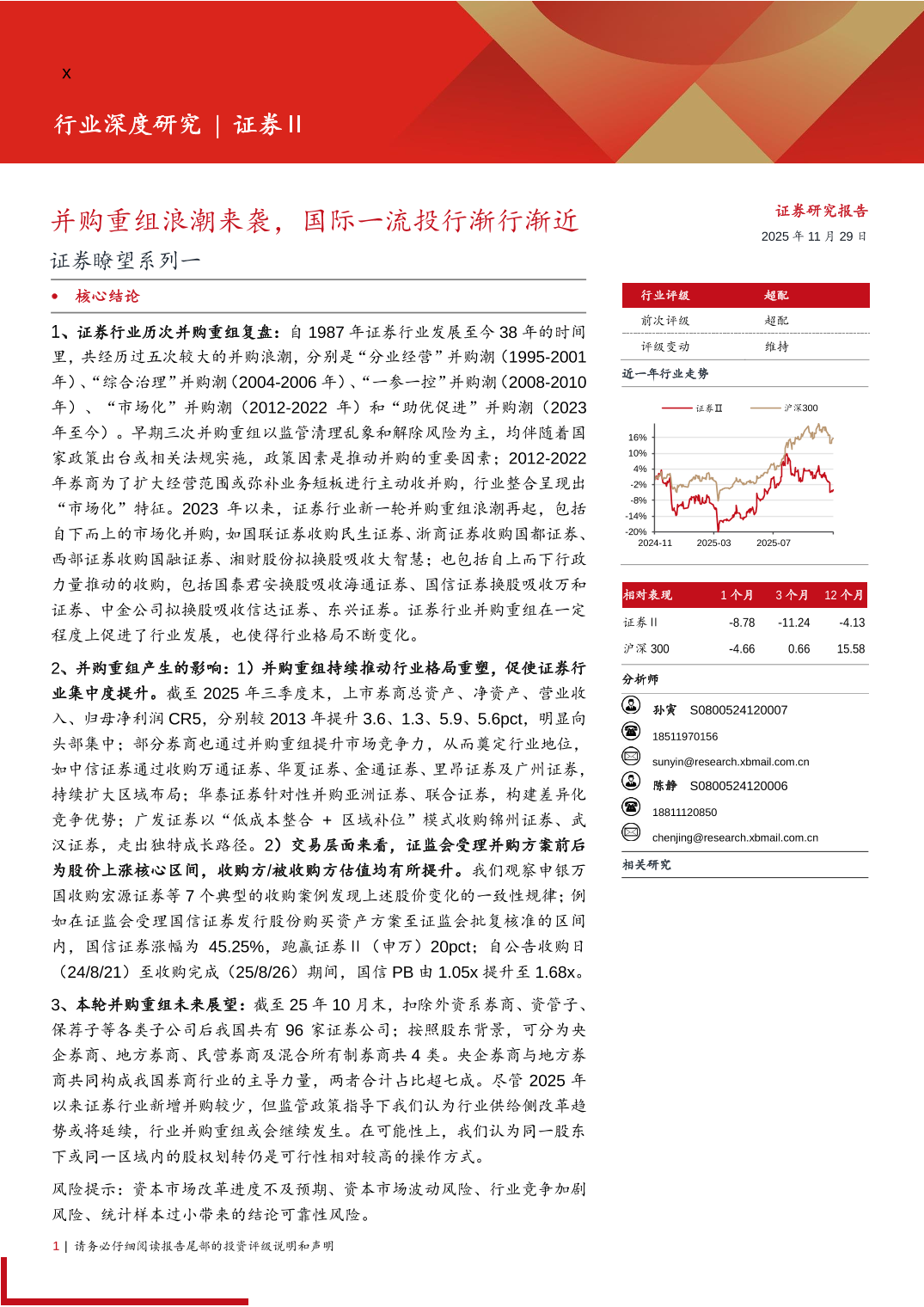 证券行业瞭望系列一:并购重组浪潮来袭,国际一流投行渐行渐近