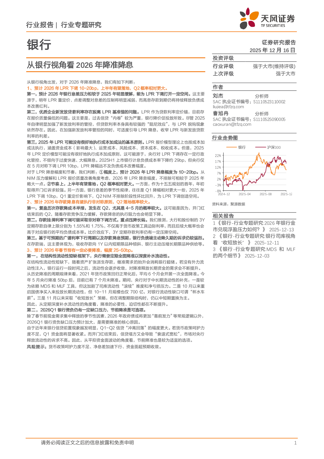 银行业专题研究:从银行视角看2026年降准降息