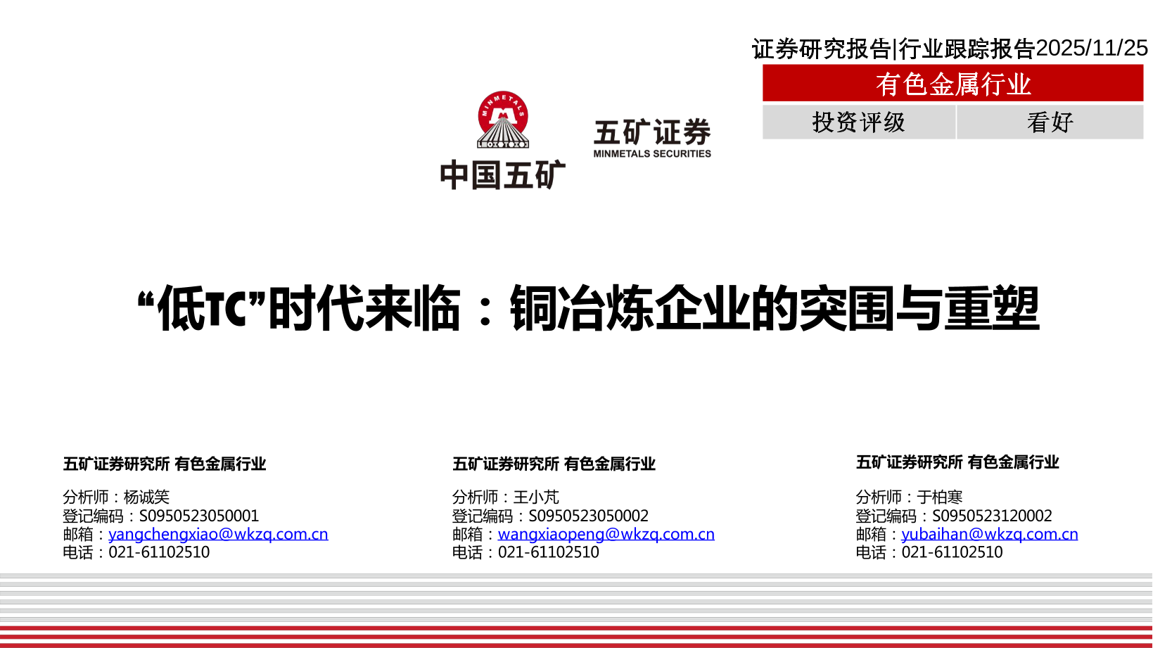 有色金属行业:“低TC”时代来临:铜冶炼企业的突围与重塑