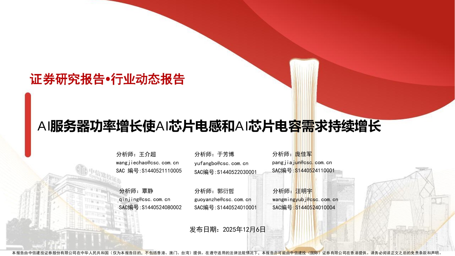 人工智能行业:AI服务器功率增长使AI芯片电感和AI芯片电容需求持续增长