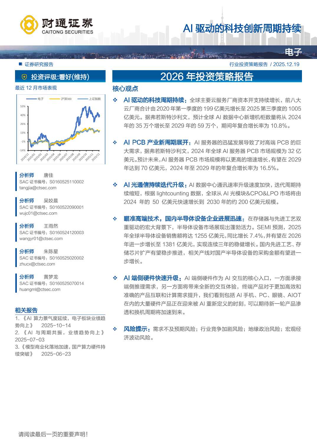 电子行业2026年投资策略报告:AI驱动的科技创新周期持续