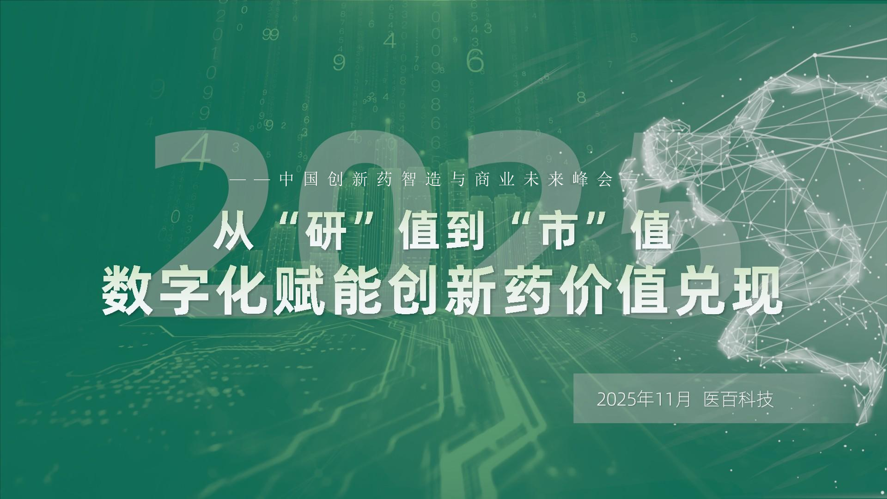 中国创新药智造与商业未来峰会:从“研”值到“市”值数字化赋能创新药价值兑现