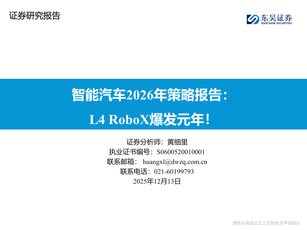 智能汽车行业2026年策略报告:L4_RoboX爆发元年