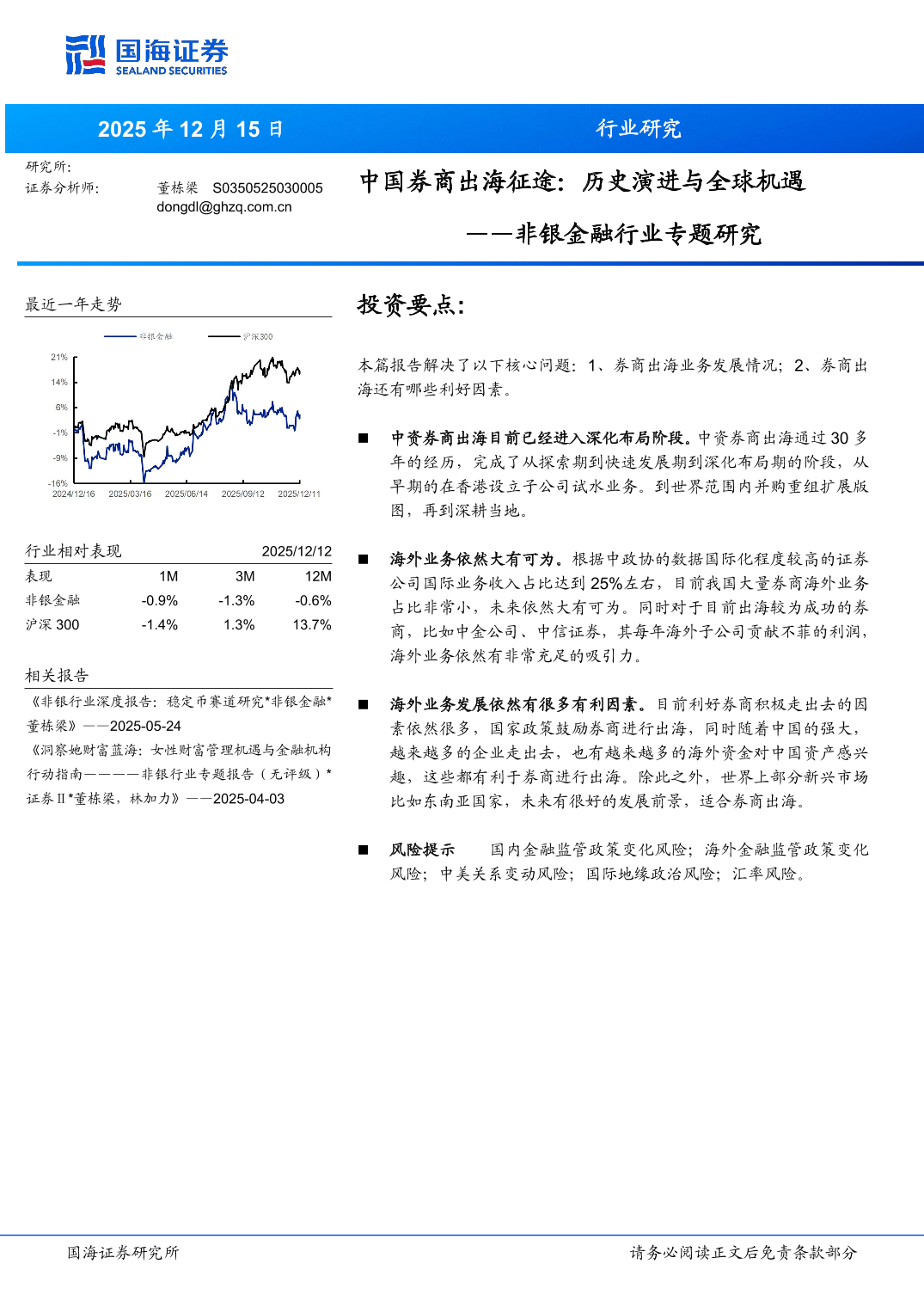 非银金融行业专题研究:中国券商出海征途,历史演进与全球机遇