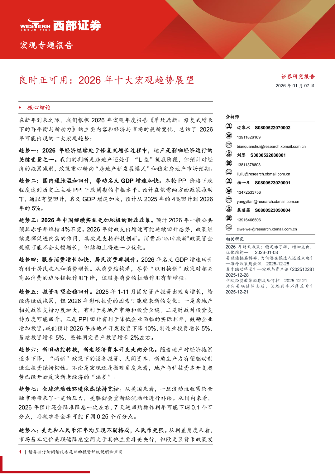 良时正可用:2026年十大宏观趋势展望-西部证券-202601