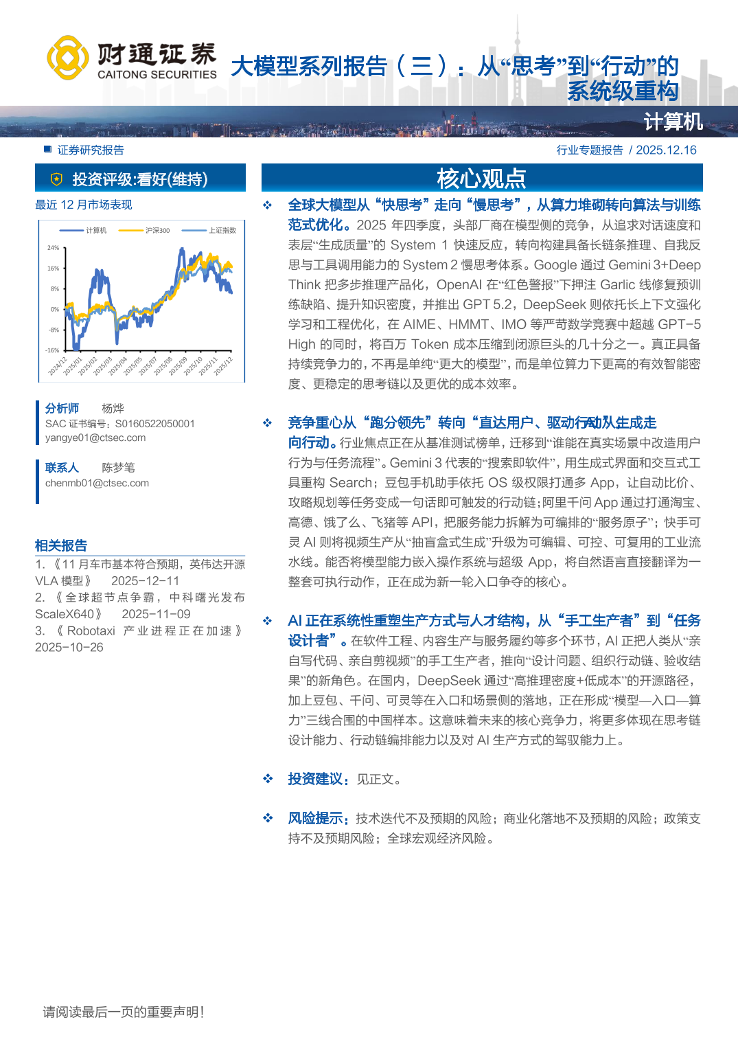 计算机行业大模型系列报告(三):从“思考”到“行动”的系统级重构