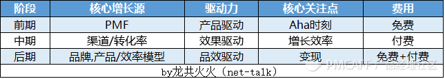 需要吸引并长期保留用户,关注用户流失率。增长的速度取决于“复合率”,就是自然增长率减去流失率。主要以口碑或者品牌营销为主。