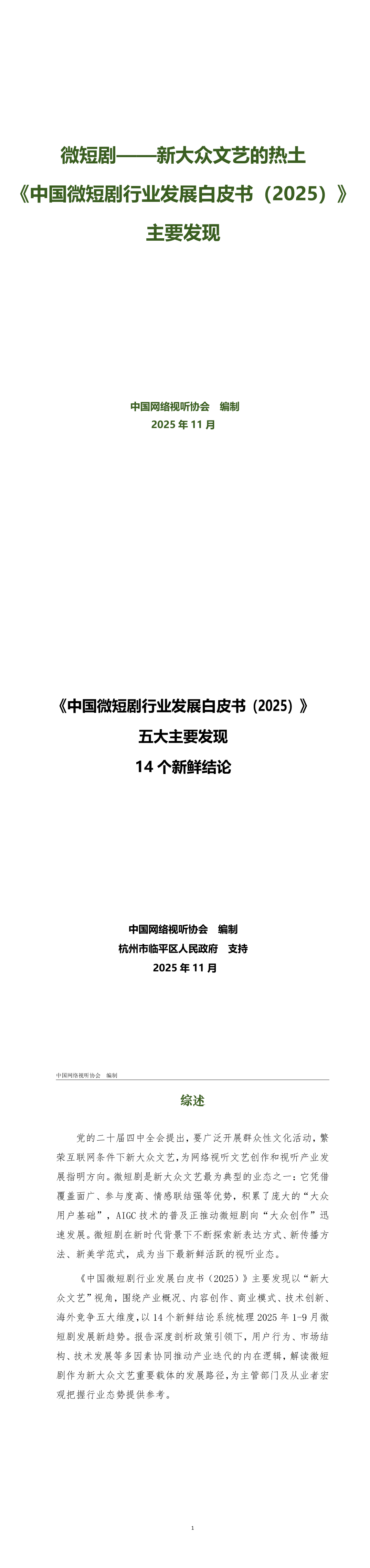 《中国微短剧行业发展白皮书2025》主要发现-中国网络视听协会-202511