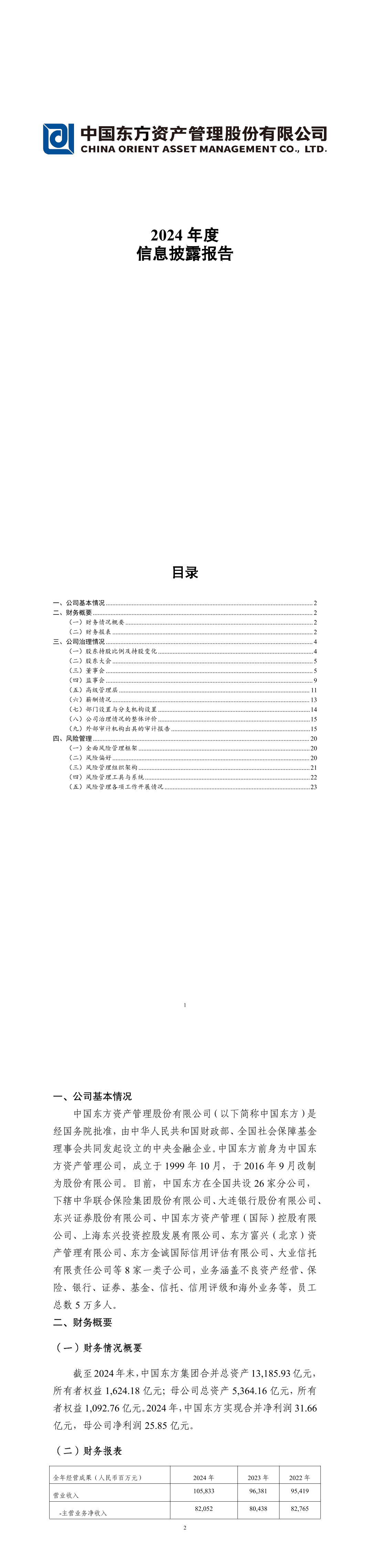 中国东方资产管理股份有限公司2024年度信息披露报告