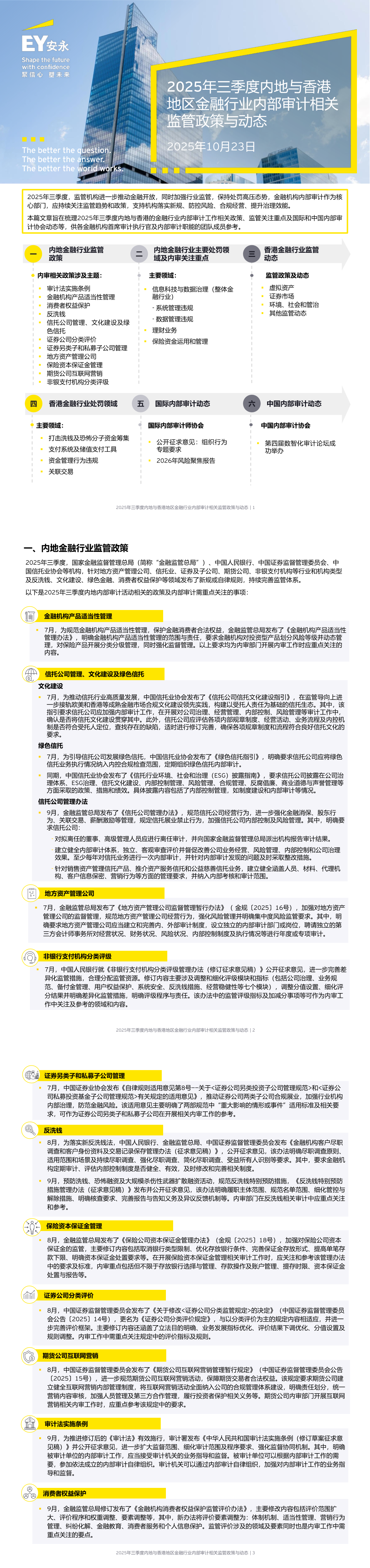 安永_2025年三季度内地与香港地区金融行业内部审计相关监管政策与动态