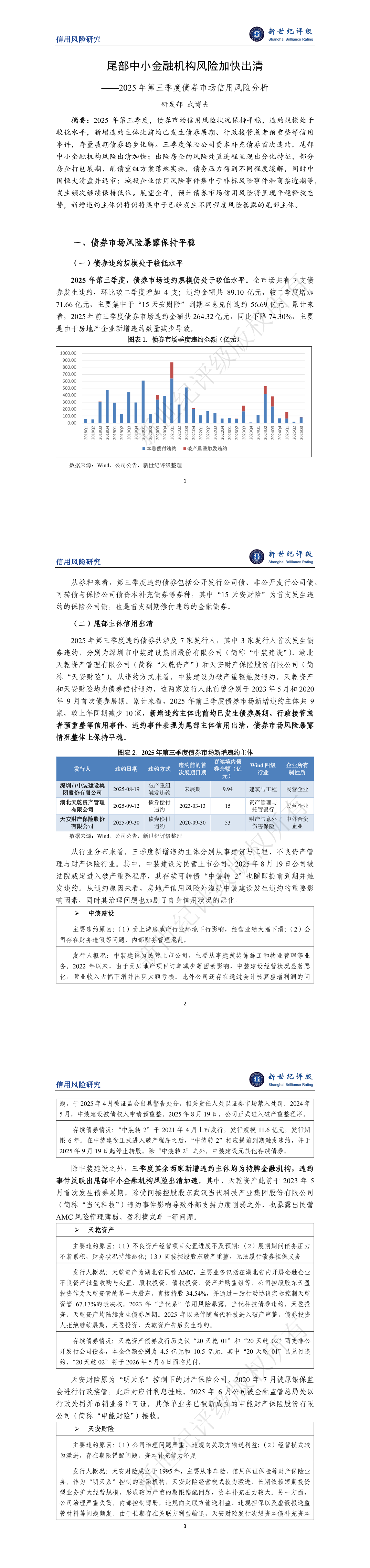 尾部中小金融机构风险加快出清——2025年第三季度债券市场信用风险分析