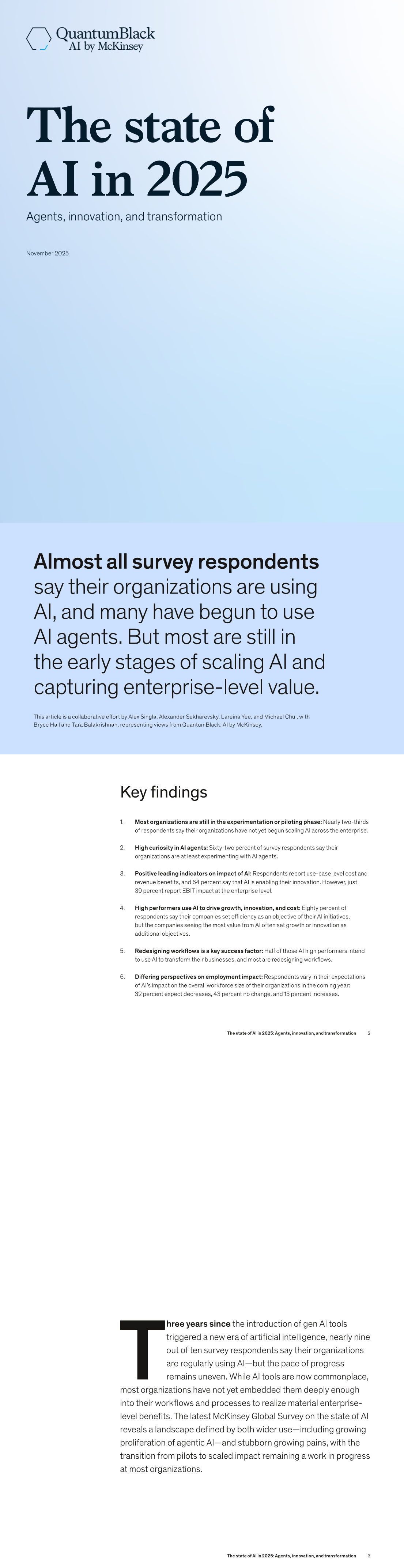 麦肯锡-2025年人工智能的现状:代理、创新和转型(英)