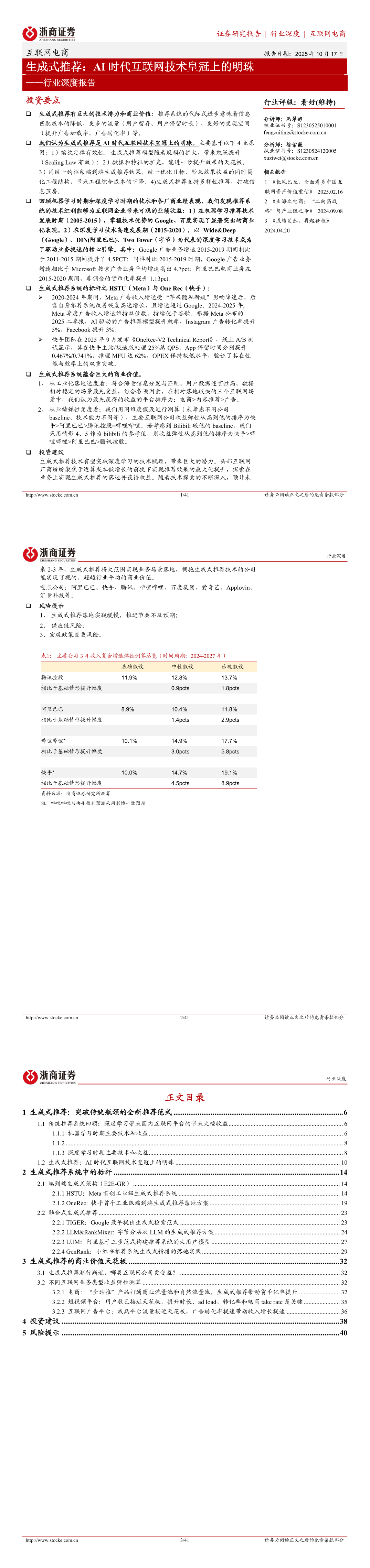 互联网电商行业深度报告-生成式推荐:AI时代互联网技术皇冠上的明珠