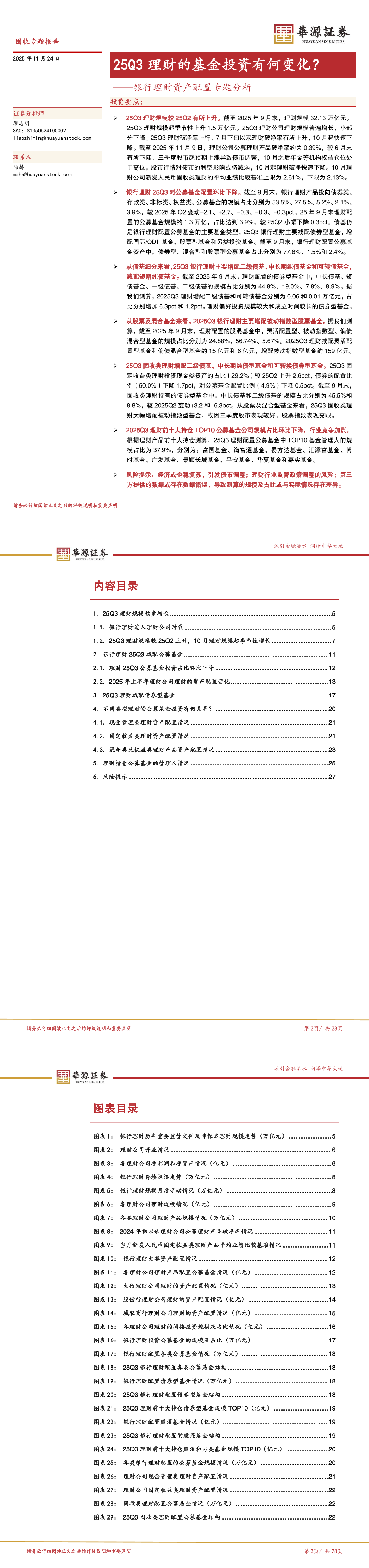 银行理财资产配置专题分析:25Q3理财的基金投资有何变化
