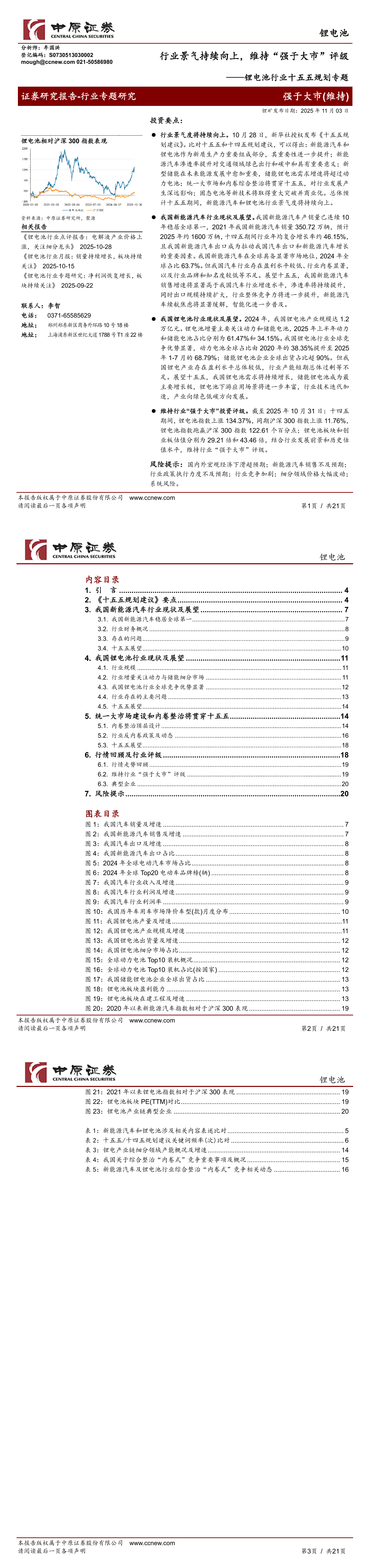 锂电池行业十五五规划专题:行业景气持续向上,维持“强于大市”评级