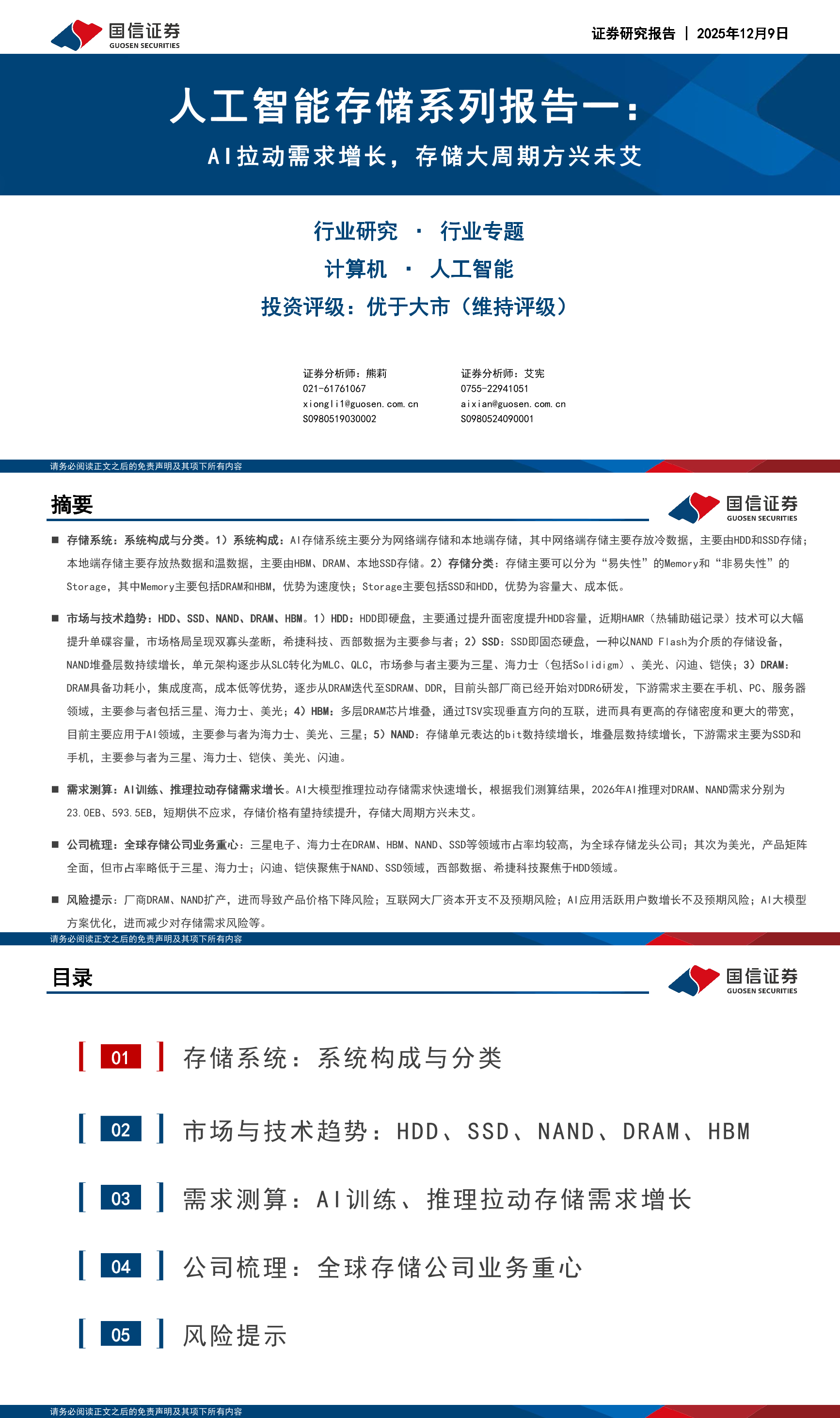 计算机行业人工智能存储系列报告一:AI拉动需求增长,存储大周期方兴未艾
