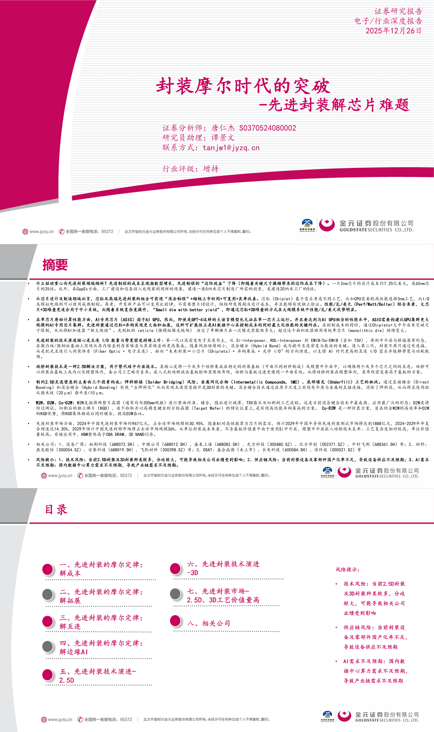 电子行业深度报告:先进封装解芯片难题-封装摩尔时代的突破