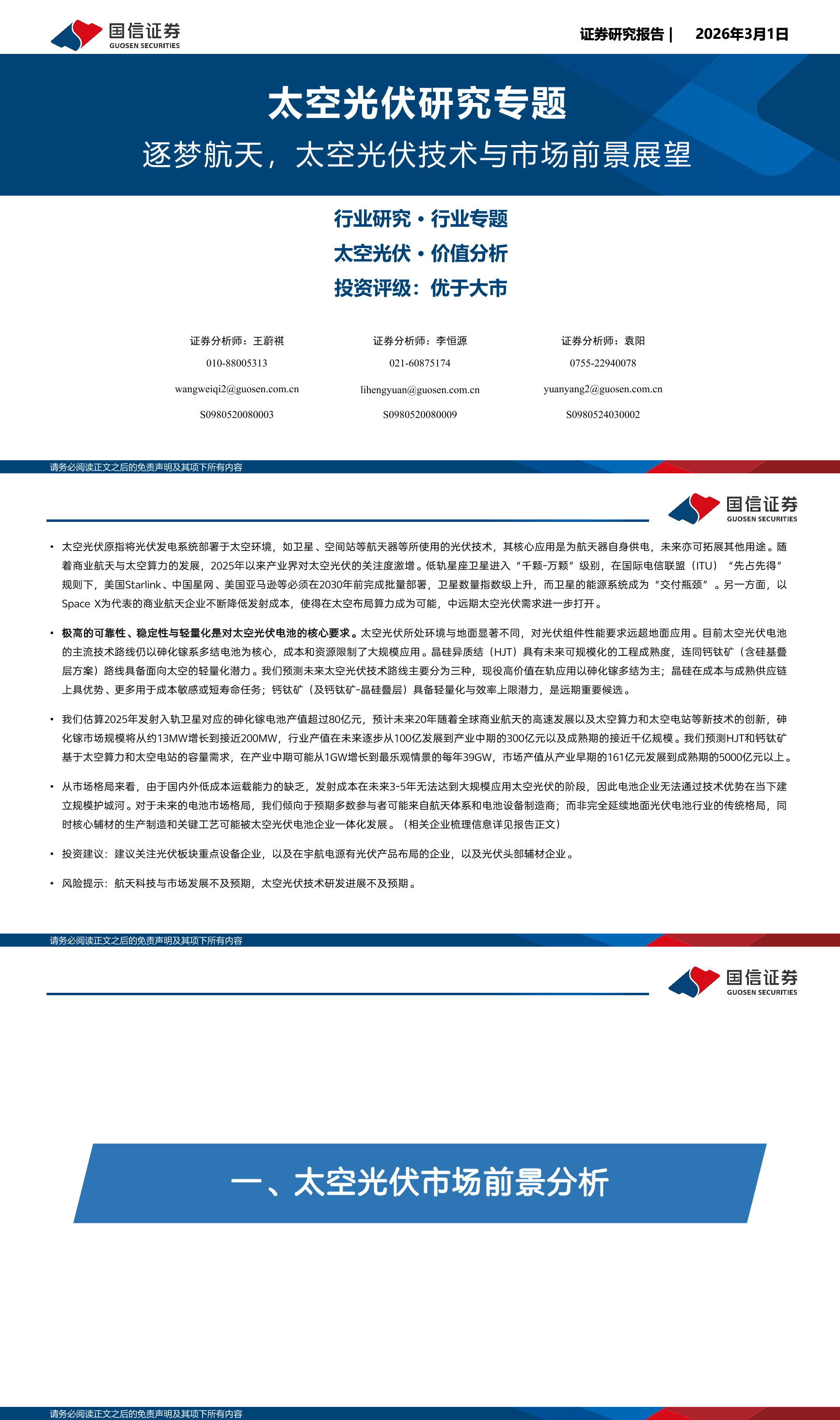 太空光伏行业研究专题:逐梦航天,太空光伏技术与市场前景展望